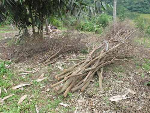 這幾天, 老公在山下忙工作時, 我就帶著孩子回到山上來整理之前砍下的黑木,
